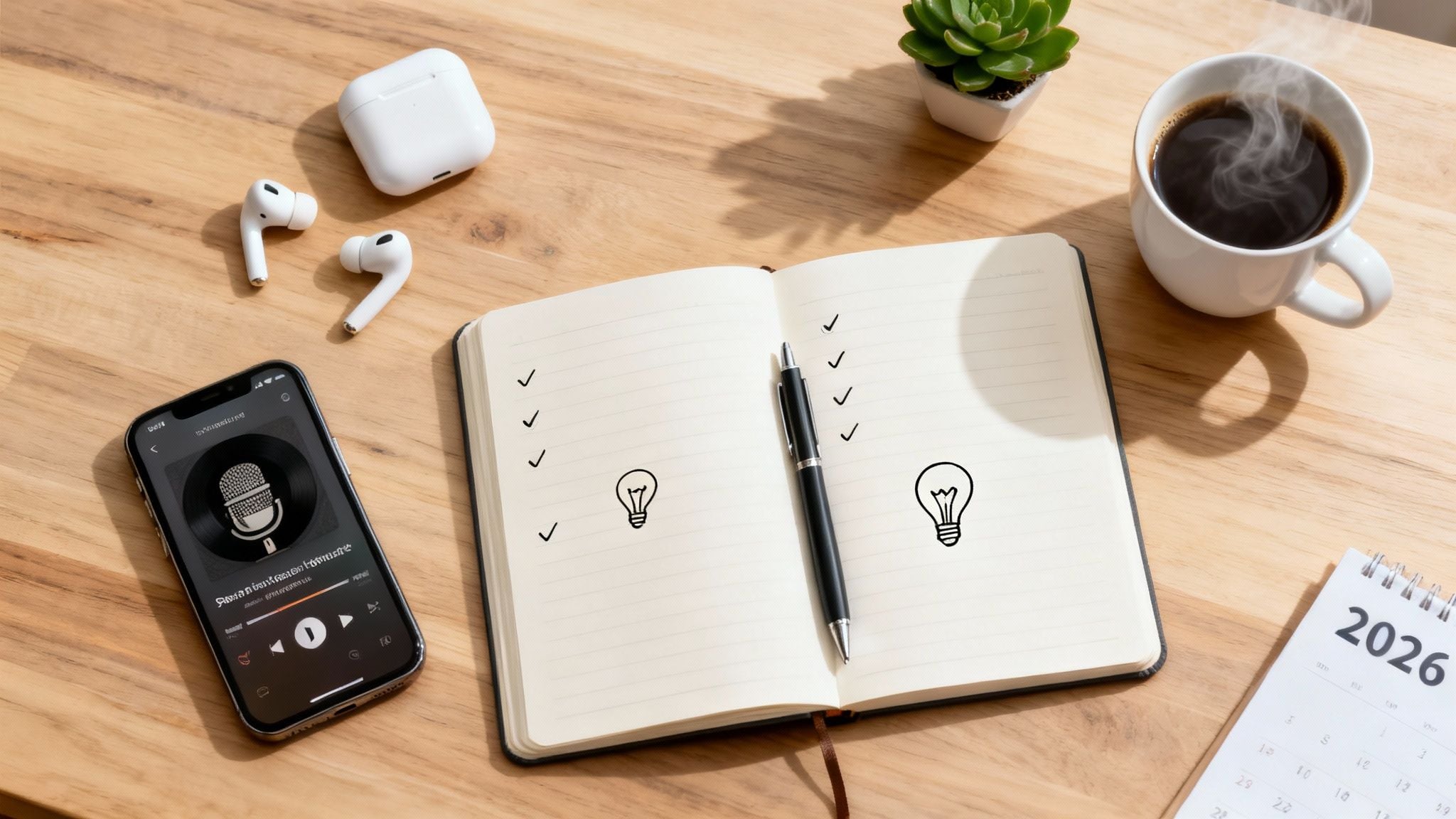 To avoid being overwhelmed by the wealth of information, focus on extracting one key insight per episode. A great approach is to create a simple system to test one new habit or framework each month. Listening with the right gear, like one of the best laptops for productivity for taking notes or accessing transcripts, can significantly enhance your experience.